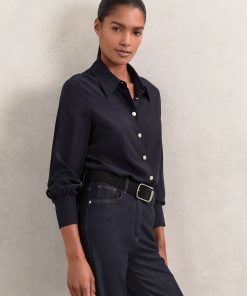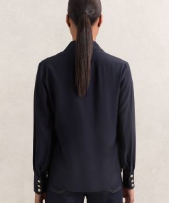 The Gianna shirt is a relaxed yet refined style, crafted from luxurious silk for a soft silhouette and fluid drape. Crest-embossed buttons along the front placket and barrel cuffs enhance its polished appeal. 100% silk Classic collar Long sleeves Barrel cuffs Crest-embossed buttons