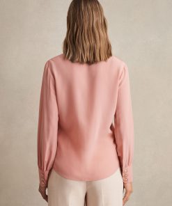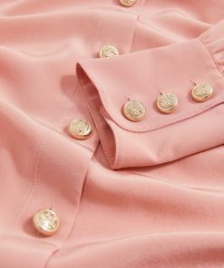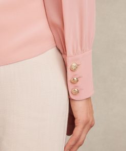 The Pink Gianna shirt is a relaxed yet refined style, crafted from luxurious silk for a soft silhouette and fluid drape. Crest-embossed buttons along the front placket and barrel cuffs enhance its polished appeal. 100% Silk Classic collar Long sleeves Barrel cuffs Crest-embossed buttons The model is wearing a size 8. Measurements of model: 5ft 9.5″ / 177cm.