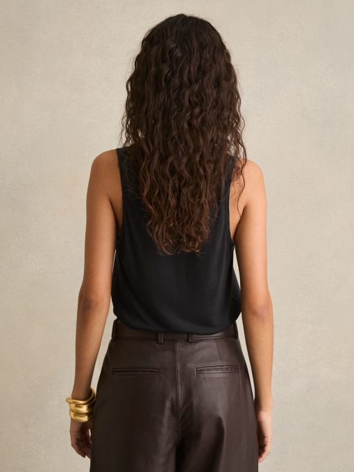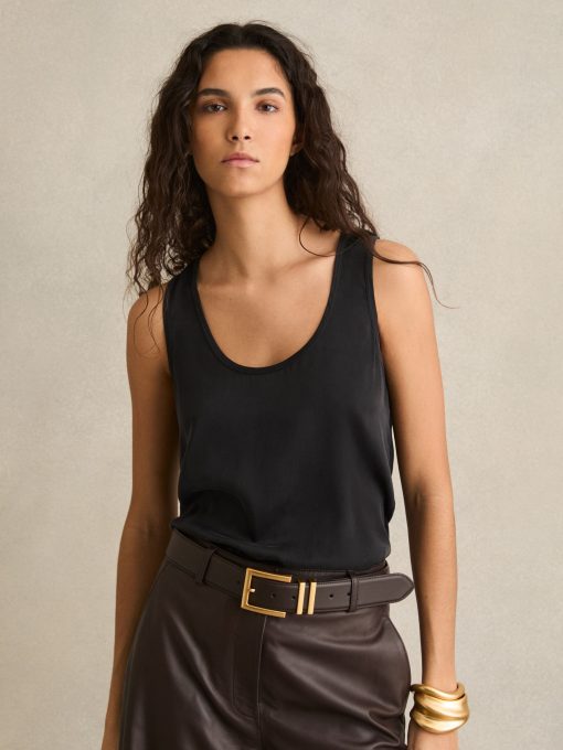 A smooth silk front panel adds a touch of luxe to the Black Ruby cami top, whilst a soft jersey drapes effortlessly at the back. A scoop neckline completes the style. Silk front panel Jersey back panel Scoop neckline The model is wearing a size S. Measurements of model: 5ft 9.5″ / 176.5cm.