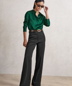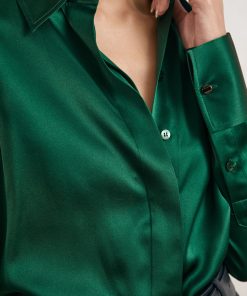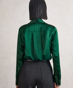 Reiss Women’s Silk-satin Concealed-placket Shirt In Green | Green