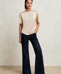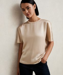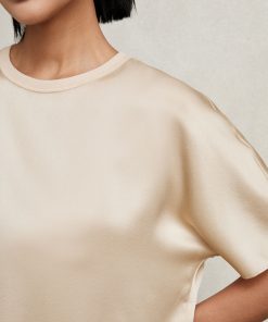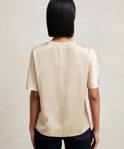 The Champagne Neutral Lena top is crafted from pure silk for a fluid, elevated feel. It features a rib-knit crew neckline and grown-on short sleeves for a clean, modern finish. 100% silk Rib-knit crew neckline Short sleeves Centre-back seam