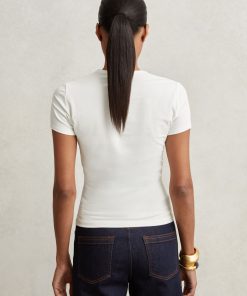 The White Leia T-shirt is crafted from stretch-cotton jersey for a soft, comfortable feel. A V-neckline and short sleeves lend it timeless appeal, ideal for effortless layering. Cotton jersey with stretch V-neckline Short sleeves The model is wearing a size S. Measurements of model: Height 5ft 10″ / 177.8cm.