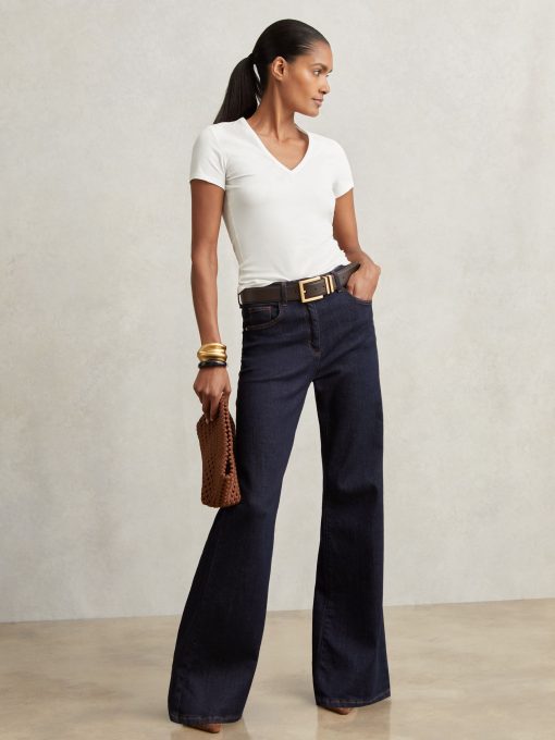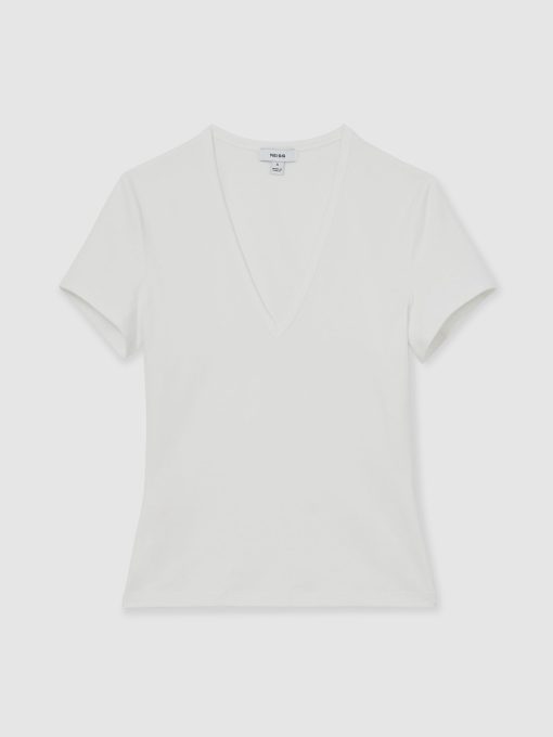 The White Leia T-shirt is crafted from stretch-cotton jersey for a soft, comfortable feel. A V-neckline and short sleeves lend it timeless appeal, ideal for effortless layering. Cotton jersey with stretch V-neckline Short sleeves The model is wearing a size S. Measurements of model: Height 5ft 10″ / 177.8cm.