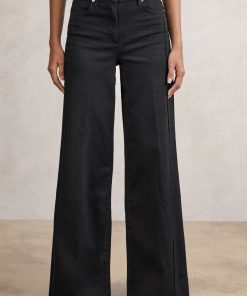 Reiss Women’s Stretch-cotton Wide-leg Jeans In Black | Black