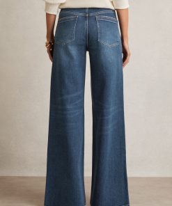 Crafted from stretch cotton for a softer, more supple feel than traditional denim, the Mid Blue Heather jeans hug the hips before gently flowing into a wide-leg silhouette. The high-rise design is further elevated by pintuck detailing along the front of each leg, adding a refined touch. Cotton with stretch Wide Leg High rise Raised front seam Logo patch on the reverse Five pockets Front button and zip The model is wearing a size 26. Measurements of model: Height 5ft 10″ / 178cm. Regular inside leg length 32″ / 81cm.