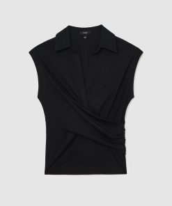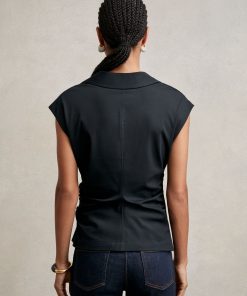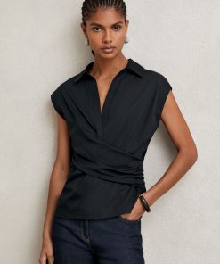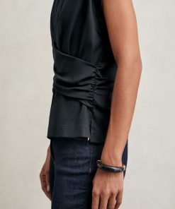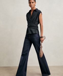 A wrap design that drapes effortlessly across the front lends the Navy Jean top a sense of modern elegance. It’s crafted from stretch-cotton jersey and framed with a spread collar and V-Neckline for soft structure around the topline. Stretch-cotton jersey Wrap front Collar with V-Neckline Gathered sides Cap sleeves The model is wearing a size S. Measurements of model: 5ft 9″ / 175cm.