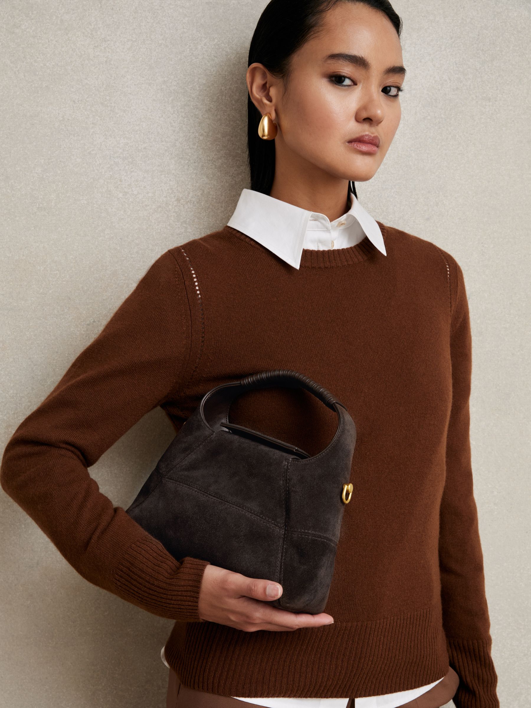 Reiss Women’s Suede Crossbody Bag In Chocolate | Chocolate