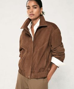 Reiss Women’s Suede Funnel-neck Bomber Jacket In Tan | Tan