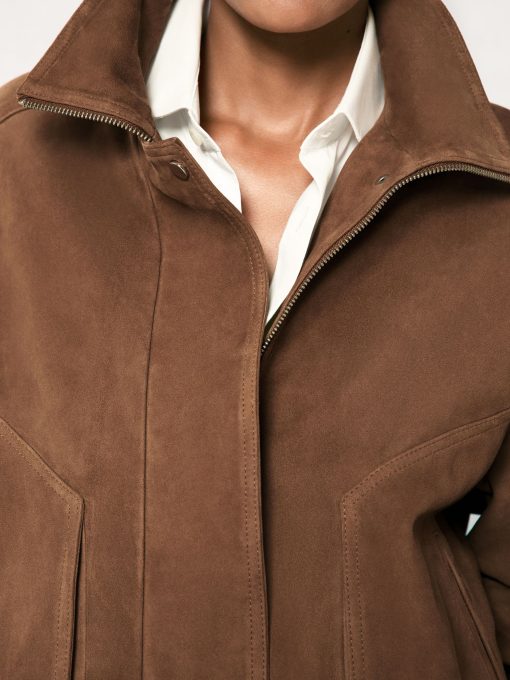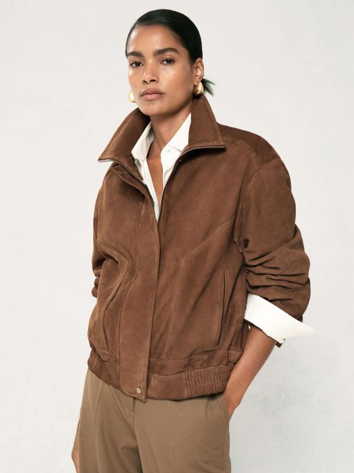 Reiss Women’s Suede Funnel-neck Bomber Jacket In Tan | Tan