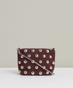 Crafted from supple suede and defined by polished, domed silver-tone studs, the Leandra bag adds a sleek accent to occasion looks. A removable snake-chain strap offers versatile styling. 100% suede Domed studs Removable snake-chain shoulder strap Internal slip pocket Zip closure Height 14cm Width 17cm Depth 10cm