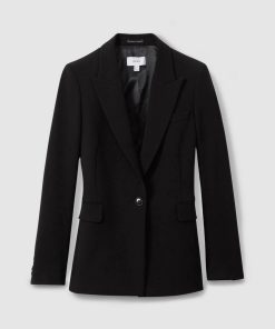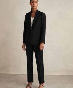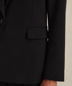 Crafted from a smooth-feel, comfort-stretch fabric, the black Gabi suit blazer has a single-breasted, tailored shape, perfect for pairing with matching trousers. Matching trousers Single breasted Vent to reverse Lined Tailored fit The model is wearing a size 8. Measurements of model: 5ft 9.5″ / 176cm.