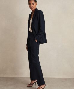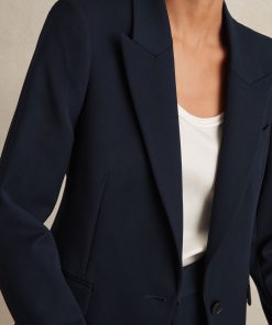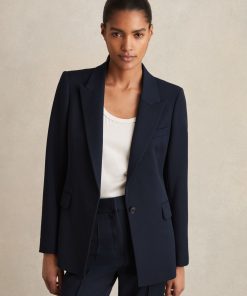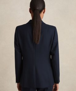 Crafted from a smooth-feel, comfort-stretch fabric, the navy Gabi suit blazer has a single-breasted, tailored shape, perfect for pairing with matching trousers. Matching trousers Single breasted Vent to reverse Lined Tailored fit The model is wearing a size 8. Measurements of model: Height 5ft 10″ / 177.8cm.