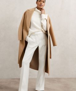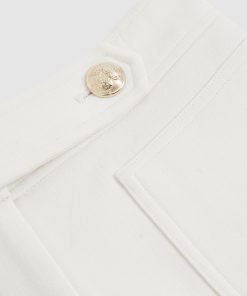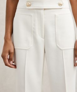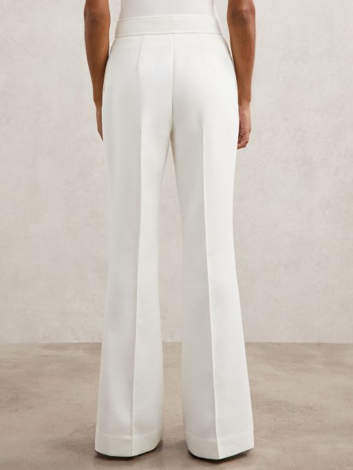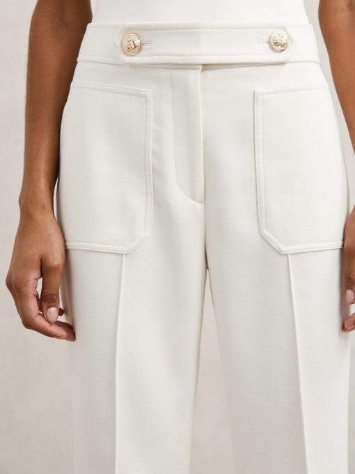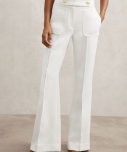 Crafted from a structured twill fabric in a flared silhouette, the Lily trousers are a refined style, perfect for any occasion. Crest-embossed buttons punctuate the waist tab, adding a polished finish, while front patch pockets lend a modern twist.Twill fabric with woolFlaredFront patch pocketsFront pleatsDual button waist tab with zip