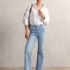 Crafted from smooth twill, the Green Priya trousers offer a modern take on tailored elegance. With a high-rise fit and flared legs, they feature patch pockets for added utility and a hook-and-bar fastening with a zip for a sleek finish. Twill Flared High rise Patch pockets Hook and bar fastening with zip Belt not included The model is wearing a size 8. Measurements of model: Height 5ft 9″ / 175cm. Regular inside leg length 34.5″ / 88cm.