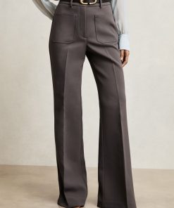 Reiss Women’s Twill Patch-pocket Flared Trousers In Mauve Neutral | Mauve Neutral
