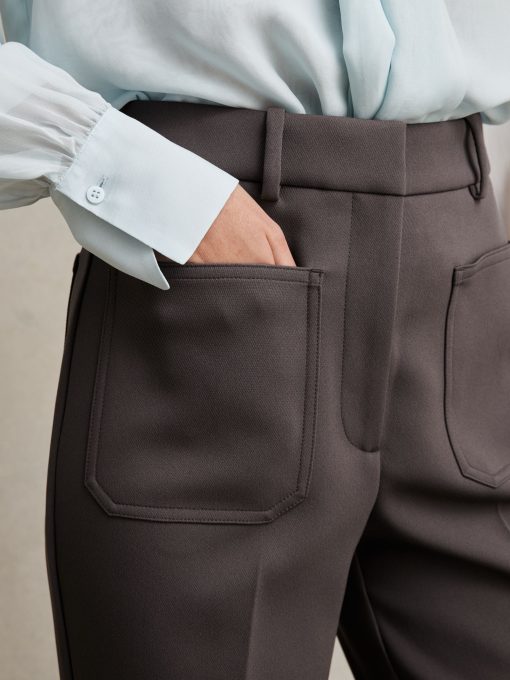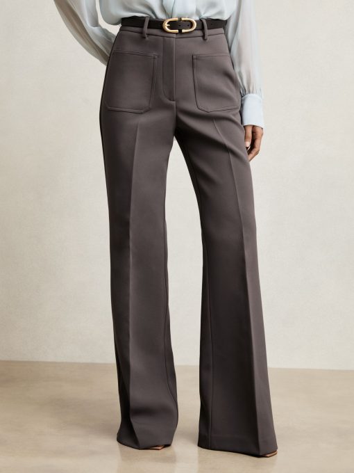 Reiss Women’s Twill Patch-pocket Flared Trousers In Mauve Neutral | Mauve Neutral