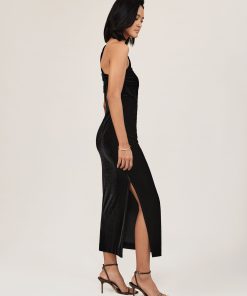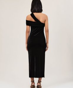 The Dalia dress is crafted from stretch velvet for a smooth, body-skimming silhouette. Designed with an asymmetric one-shoulder neckline and flattering ruching through the body, it falls to a sleek midi length for a refined evening look.Velvet with stretchOne-shoulderRuchingSide slit Regular side neck to hem 41.5″ / 106cm.