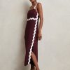 A contrasting wave trim defines the Asher midi dress, artfully contouring the sides, waistline, and shoulders. Midweight crepe provides a polished finish, while a full lining ensures a smooth, elegant drape. A single side slit enhances fluidity and movement. Mid-lightweight crepe Contrasting wave trim Wave shoulder straps Square neckline Side slit Lined Concealed zip to reverse The model is wearing a size 8. Measurements of model: Height 5ft 10″ / 177.8cm. Regular side neck to hem 44″ / 112cm.