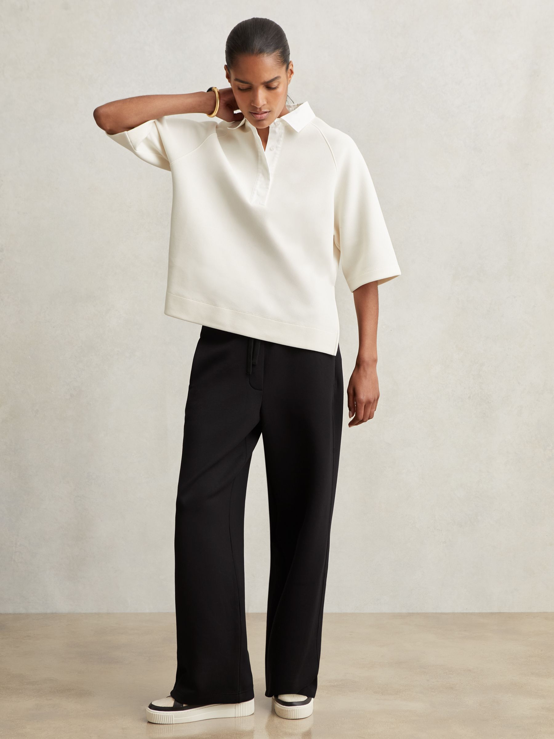 Crafted from smooth interlock jersey with added stretch, the Laney joggers are designed in a wide-leg silhouette for a modern, relaxed look. A ribbed drawstring waistband enhances comfort, making them an effortless off-duty choice. Interlock jersey with stretch Heavyweight Wide leg Ribbed waistband with drawstring Side slip pockets The model is wearing a size S Measurements of model: Height 5 10' / 177.8cm