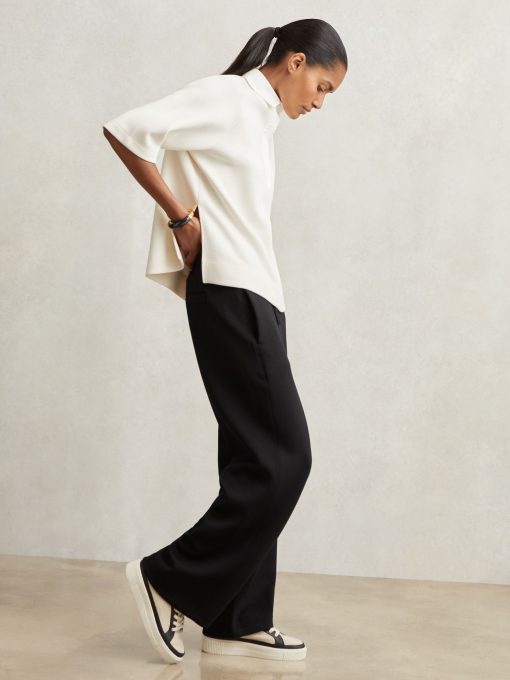 Crafted from smooth interlock jersey with added stretch, the Laney joggers are designed in a wide-leg silhouette for a modern, relaxed look. A ribbed drawstring waistband enhances comfort, making them an effortless off-duty choice. Interlock jersey with stretch Heavyweight Wide leg Ribbed waistband with drawstring Side slip pockets The model is wearing a size S Measurements of model: Height 5 10' / 177.8cm