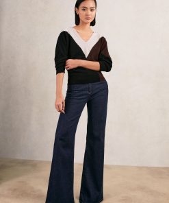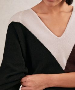 The June jumper makes a statement with its bold geometric design, knitted in contrasting panels for a color-blocked effect. Crafted from a soft wool blend with a touch of cashmere, it’s shaped with a relaxed V-neckline and slouchy raglan sleeves for an effortless feel. Wool blend with cashmere Colour-blocked design V-Neckline Raglan sleeves Ribbed hem and cuffs The model is wearing a size S. Measurements of model: Height 5ft 9' / 175cm.