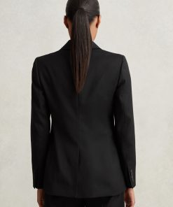 The Black Haisley blazer is cut from a lightly textured wool blend to a sharp double-breasted silhouette. Peak lapels, shaped shoulders and horn-effect buttons enhance it's structured, polished feel. Lightly textured wool blend Double-breasted Peak lapels Shaped shoulders Single vent to reverse The model is wearing a size 8. Measurements of model: Height 5ft 10″ / 177.8cm.