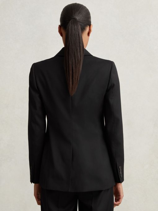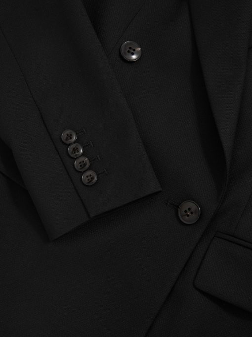 The Black Haisley blazer is cut from a lightly textured wool blend to a sharp double-breasted silhouette. Peak lapels, shaped shoulders and horn-effect buttons enhance it's structured, polished feel. Lightly textured wool blend Double-breasted Peak lapels Shaped shoulders Single vent to reverse The model is wearing a size 8. Measurements of model: Height 5ft 10″ / 177.8cm.