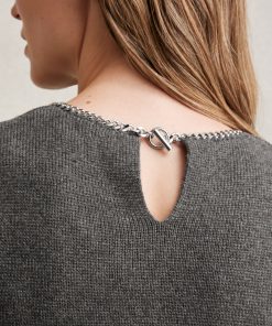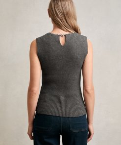 The Nina vest is spun from a soft wool-blend with a touch of cashmere for added softness. A silver-tone chain necklace lends an elegant touch, whilst a wide rib-knit hem hugs the hips. Wool-blend knit Chain necklace trim with T-bar closure Keyhole to reverse Rib-knit hem