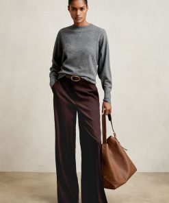 The Charcoal Suki jumper is a modern knit, elevated by its softly draped batwing sleeves and tactile reverse seams. It’s crafted from a wool blend with a touch of cashmere for supreme softness. Wool blend with cashmere Batwing sleeves Reverse seams High crew neckline Rib-knit trims The model is wearing a size S. Measurements of model: Height 5ft 10″ / 177.8cm.
