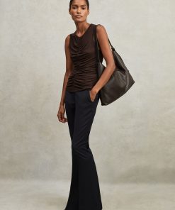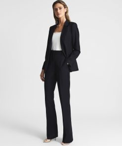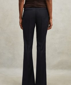 Upgrade your workwear options with the Navy Haisley, blended with premium wool yarns for a soft and comfortable wear. They re engineered in a flared silhouette, a flattering style for the figure. Tuck in a white blouse underneath the coordinating blazer for a monochrome office edit. Wool blend Mid-rise Belt loops Zip fly and hook fastening Slip pockets to each hip Pressed creases Buttoned jetted pockets to reverse Flared leg The model is wearing a size 8. Measurements of model: Height 5ft 9″ / 175cm.