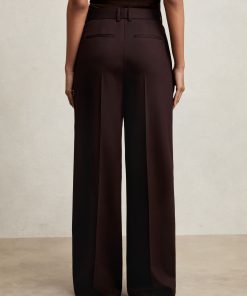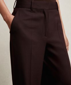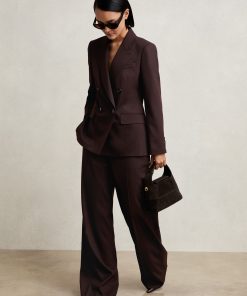 The Aubergine Solene trousers offer an effortlessly modern take on classic tailoring, cut from a wool-blend twill fabric to a fluid, wide-leg silhouette. Pressed creases and pick-stitched side pockets enhance their polished appeal. Wool-blend twill Wide leg Pressed creases Double hook-and-bar with zip The model is wearing a size 8. Measurements of model: Height 5ft 9″ / 175cm.