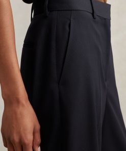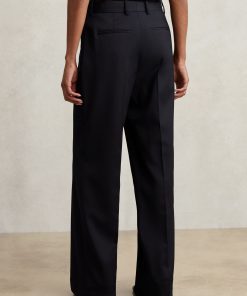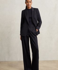 The Navy Haisley trousers are tailored from a lightly textured wool blend and fall to a fluid wide-leg silhouette. Pressed creases lend a refined finish, while side slip pockets and a double hook-and-bar closure complete the look with classic detail. Lightly textured wool blend Wide leg Side slip pockets Welt pockets to reverse Double hook-and-bar with zip The model is wearing a size 8. Measurements of the model: Height 5ft 10″ / 177.8cm.