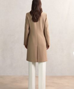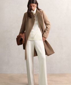 The Max coat is tailored from a premium wool blend to a clean, figure-skimming silhouette with sharp structure. Its wrapover front and standing collar offer a modern, refined take on cold-weather dressing. Wool blend Wrapover front Standing collar Single vent to reverse Concealed buttons The model is wearing a size 8 Measurements of Model: 5ft9 / 175cm Regular centre back neck to hem 39.5″ / 100cm.
