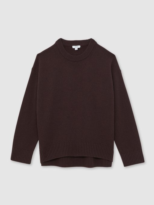 The Plum Ella jumper is knitted from a luxurious wool-cashmere blend with a relaxed shape and dropped shoulders for an effortless feel. Fully fashioned at the neckline and finished with ribbed trims, it’s a refined take on an everyday essential. Wool-cashmere blend Crew neckline Drop shoulders Rib-knit trims The model is wearing a size S. Measurements of model: Height 5ft 9' / 175cm.
