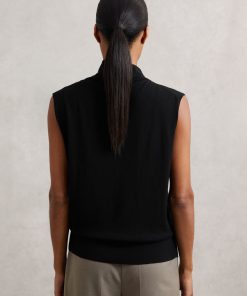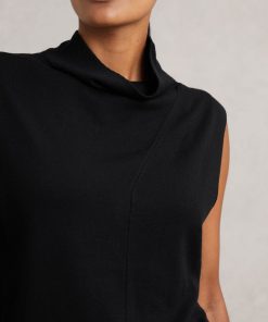 The Black Harper top is a sleeveless style made from 100% wool for supreme softness. It’s designed with a slouched funnel neckline, a ribbed waistband, and the front is complete with asymmetric stitch detailing. 100% Wool Slouched funnel neckline Sleeveless Asymmetric stitch detailing