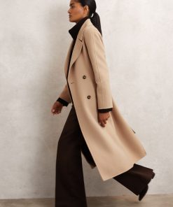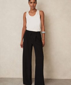Reiss Women’s Petite Elasticated-waist Wide-leg Twill Trousers In Mink Neutral | Mink Neutral