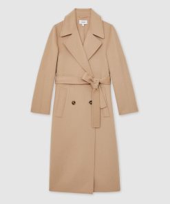 Reiss Women’s Petite Elasticated-waist Wide-leg Twill Trousers In Mink Neutral | Mink Neutral