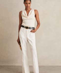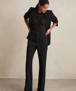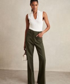 Reiss Women’s Petite Twill Patch-pocket Flared Trousers In Chocolate Brown | Chocolate Brown
