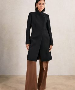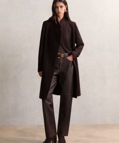 Reiss Women’s Petite Wool-blend Wrapover Mid-length Coat In Chocolate Brown | Chocolate Brown
