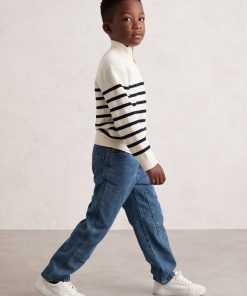 Reiss Kid’s Boys 9-13 Yrs Cotton-blend Stripe Half-zip Jumper In Navy/off White | Navy & Off White