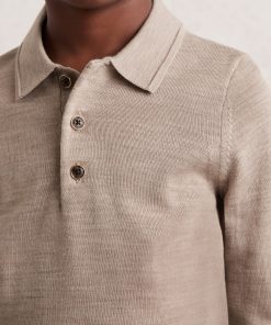 Reiss Kid’s Boys 9-13 Yrs Merino Wool Short Sleeve Polo Shirt In Wicker Melange | Wicker Melange