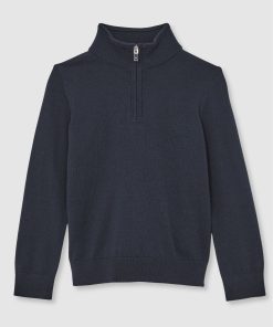 Reiss Kid’s Boys 9-13 Yrs Merino Wool Half-zip Funnel Neck Jumper In Midnight Navy | Midnight Navy