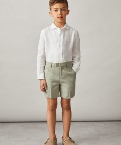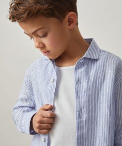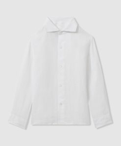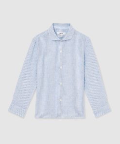 Reiss Kid’s Boys 13-14 Yrs Linen Cutaway Collar Shirt In Blue/white Stripe | Blue & White Stripe